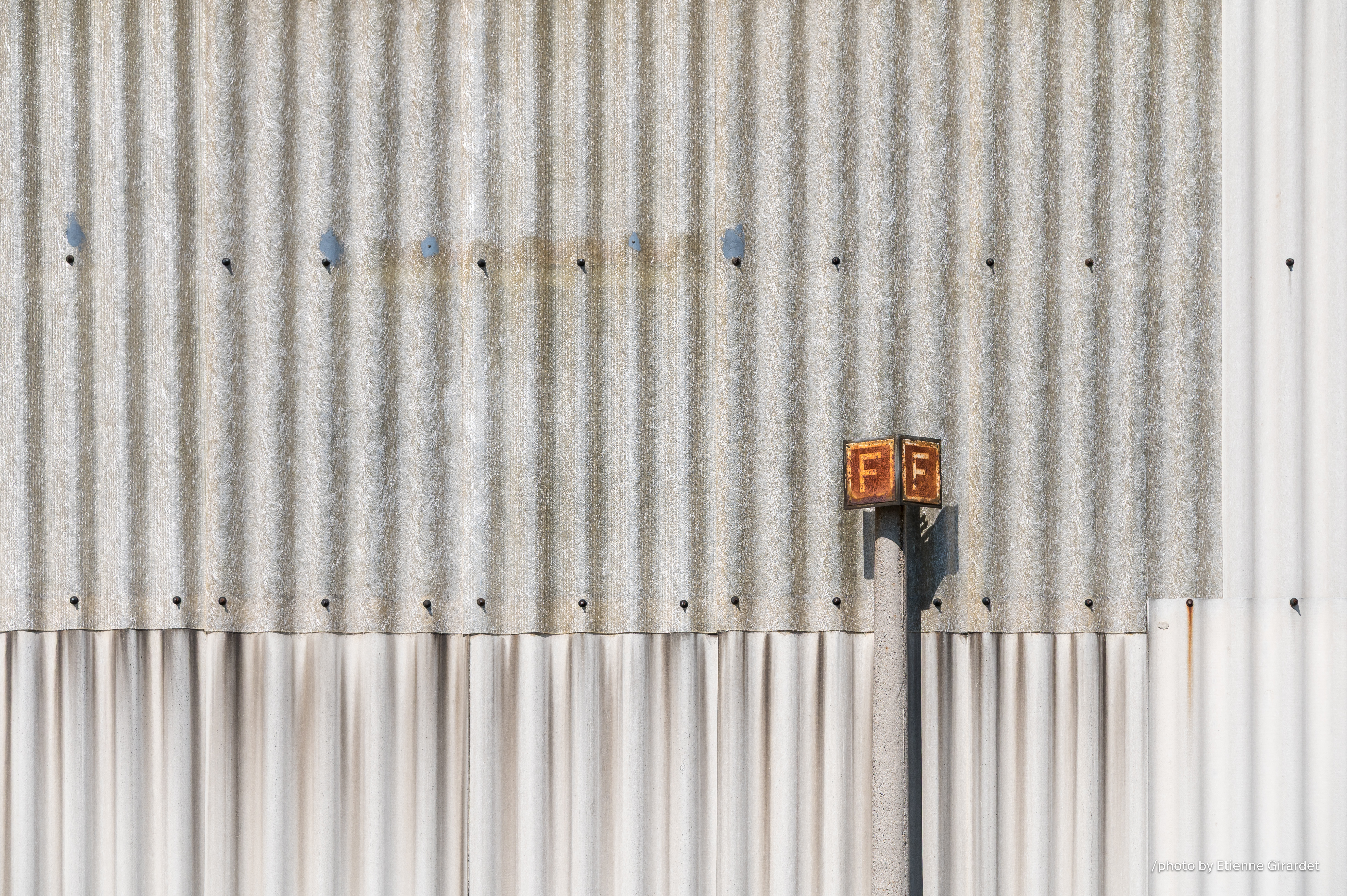 wallpaper: white wall with rusty sign »F« fpr fire. [updated: 17.02.2025 / CC BY-SA]