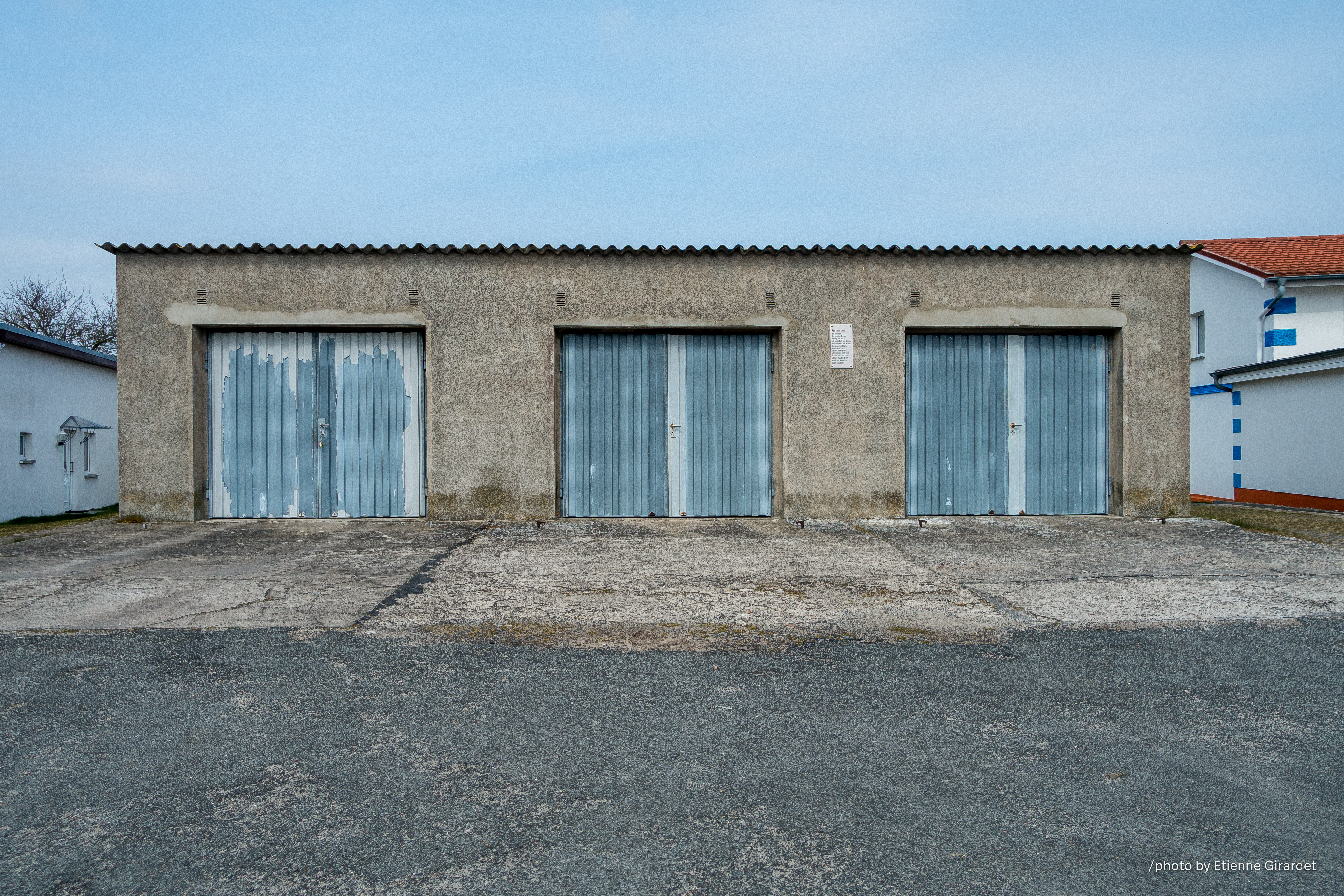 three closed garage doors. [updated: 17.02.2025 / CC BY-SA]