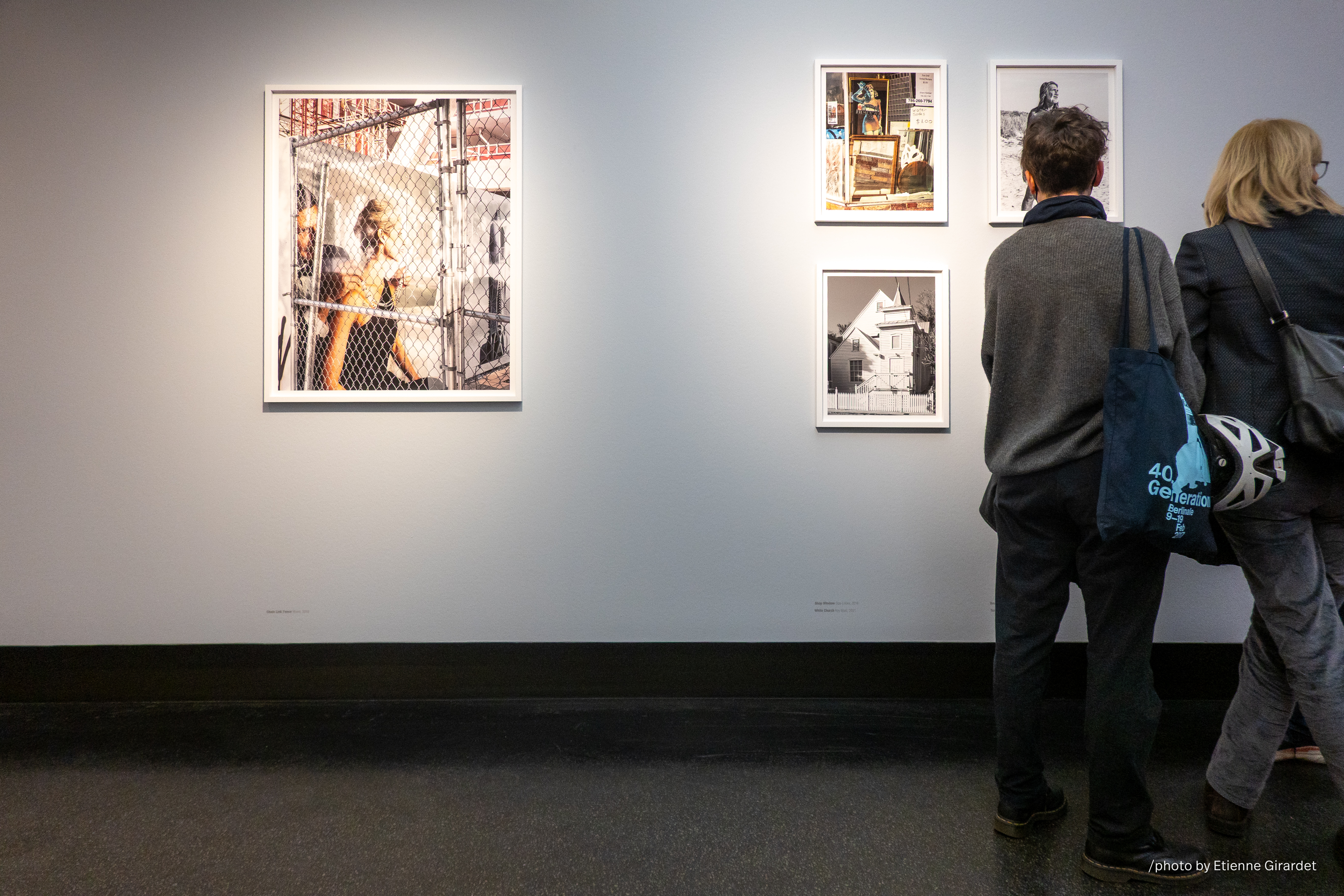 photo exhibit, viewers, multiple images. Several framed photographs are displayed on a light gray wall. People are viewing the artwork. The photographs appear to be part of an exhibition. [updated: 02.03.2025 / CC BY-SA]