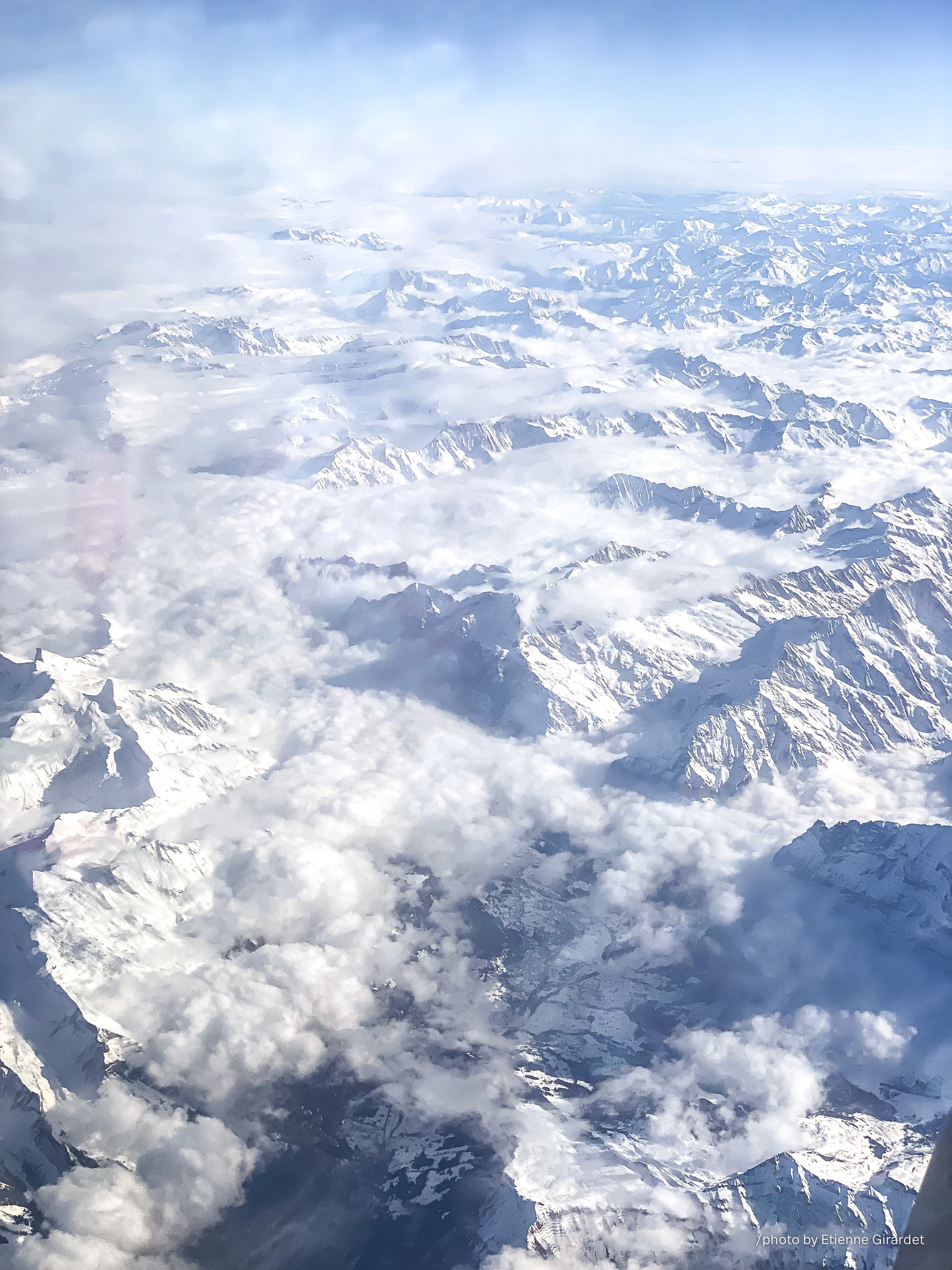 snowy alps from above clouds. High-altitude view of snow-capped mountain ranges in France. Clouds are visible between and around the peaks. [updated: 02.03.2025 / CC BY-SA]